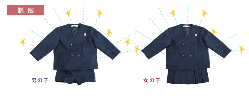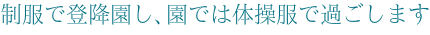 制服から体操服、また体操服から制服へと自分で着替えを行うことにより、自分の身の回りの片づけもできるようになり、また幼稚園では体操服のため、思い切り体を動かすことができます。