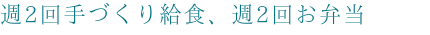 週2回、お弁当です。お母さまの愛情のこもった手づくりのお弁当をこども達は楽しみにしています。
