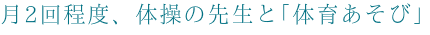 月2回程度、体操の先生といっしょに「体育あそび」も取り入れております。
